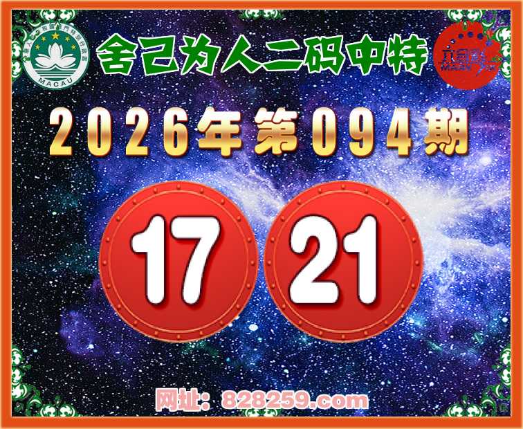 094期:【舍己为人】二码中特⚽【17.21】开:17