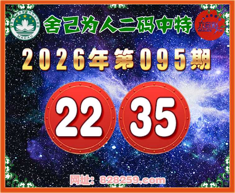 095期:【舍己为人】二码中特⚽【22.35】开:35