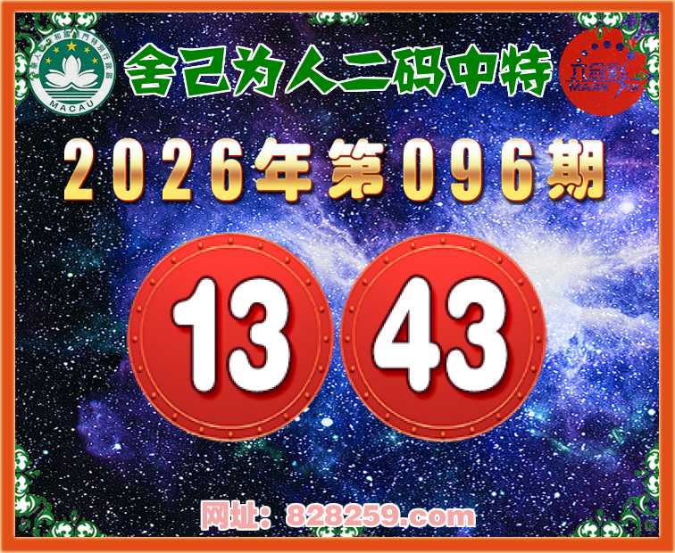 096期:【舍己为人】二码中特⚽【13.43】开:43