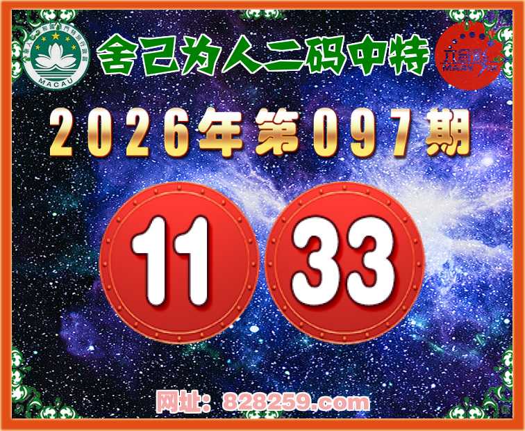 097期:【舍己为人】二码中特⚽【11.33】开:11