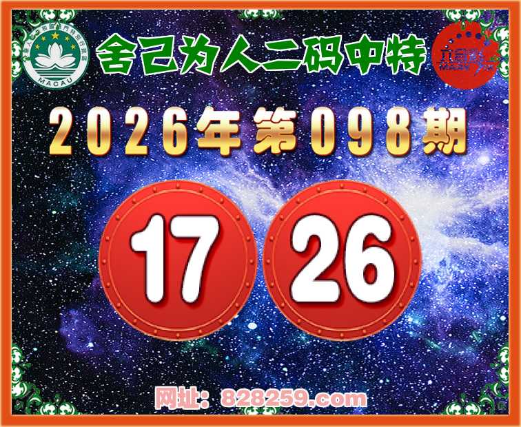 098期:【舍己为人】二码中特⚽【17.26】开:17