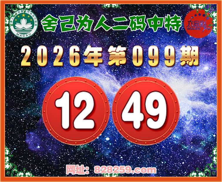 099期:【舍己为人】二码中特⚽【12.49】开:12