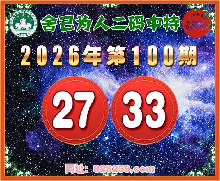 100期:【舍己为人】二码中特⚽【27.33】开:33