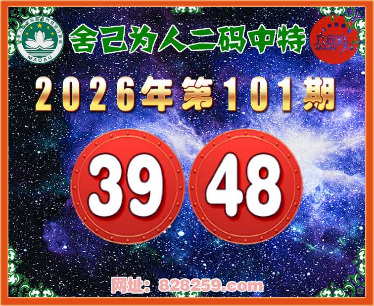 101期:【舍己为人】二码中特⚽【39.48】开:39