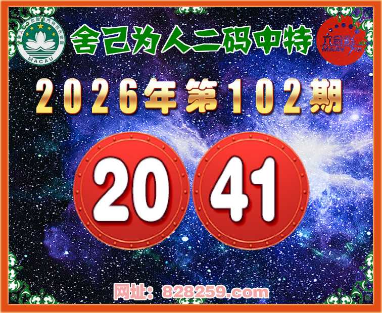 102期:【舍己为人】二码中特⚽【20.41】开:20