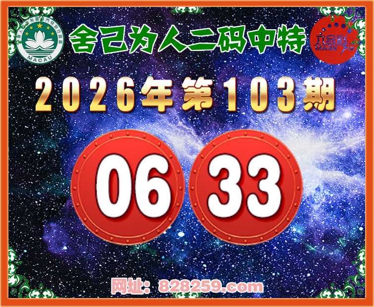 103期:【舍己为人】二码中特⚽【06.33】开:06