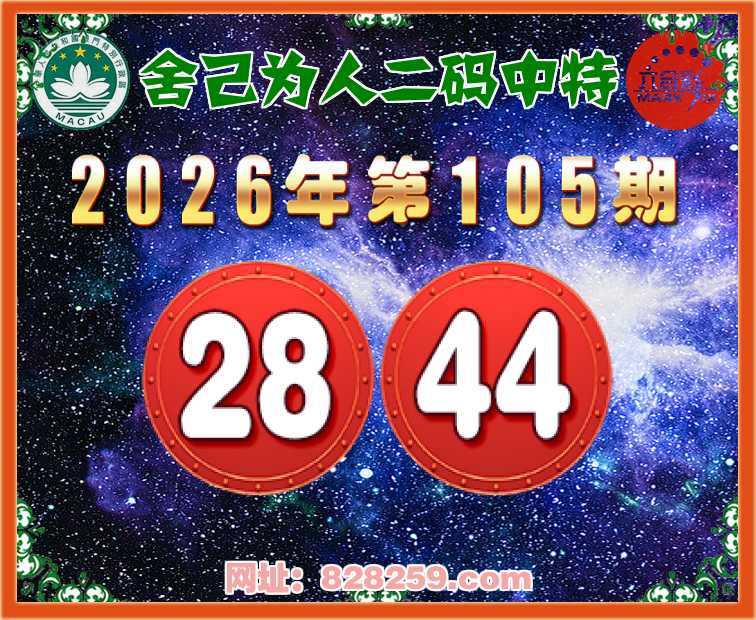 105期:【舍己为人】二码中特⚽【28.44】开:28
