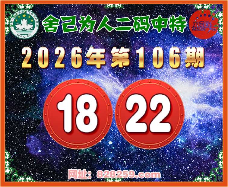 106期:【舍己为人】二码中特⚽【18.22】开:22