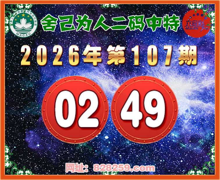 107期:【舍己为人】二码中特⚽【02.49】开:49