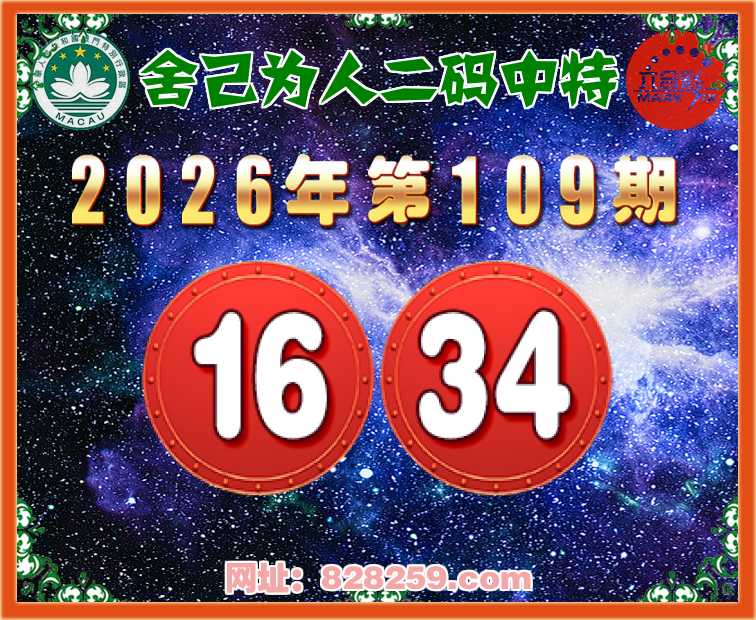 109期:【舍己为人】二码中特⚽【16.34】开:16