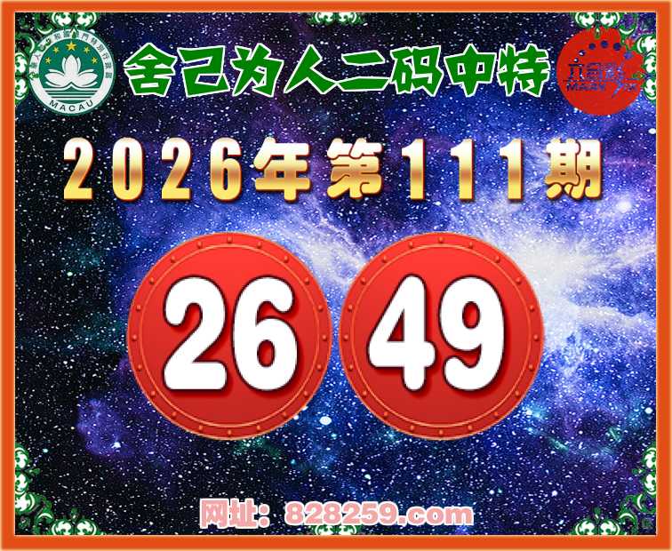111期:【舍己为人】二码中特⚽【26.49】开:01