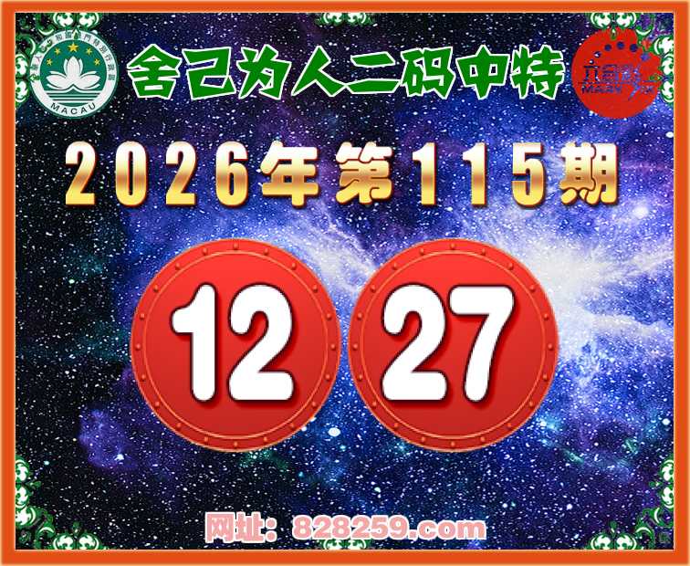 115期:【舍己为人】二码中特⚽【12.27】开:04