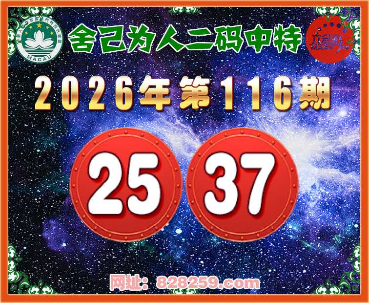 116期:【舍己为人】二码中特⚽【25.37】开:22